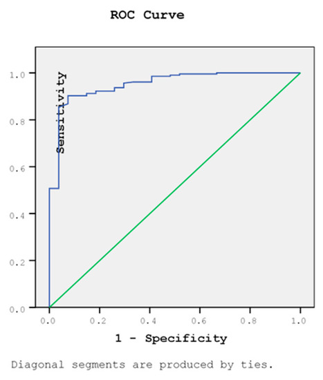 Figure 6. ROC for the cut value of the classification table. Note: area = 0.951, S.E. = 0.027, sig. = 0.000.