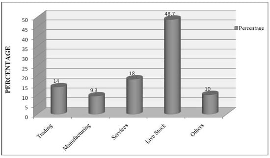 Figure 3 explains the fact that most of the loans are being allocated for livestock purposes. Just 9.3 percent is invested in the manufacturing sector. So, most of the borrowers want to invest in the livestock sector instead of other sectors like trading, manufacturing and services.