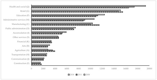 - Eurostat. 2019b. Employment by Sex, Age and Detailed ECONOMIC activity. Eurostat Home. Available online: https://appsso.eurostat.ec.europa.eu/nui/show.do?dataset=lfsq_egan22d&lang=en (accessed on 30 September 2019).