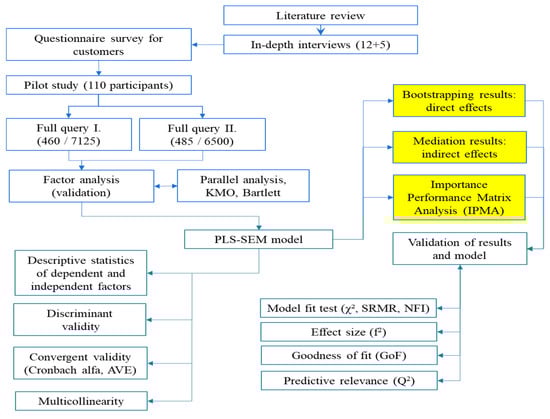 The analysis of consumer expectations was based on quantitative research, and a questionnaire survey was used for data collection. First of all, the factors influencing consumer behavior and their indicators were identified, based on related literature sources and formerly performed in-depth interviews. Based on the extensive literature review and in-depth interviews, compliance with consumer needs was identified as the most important success factor in fashion retail sector. To examine consumer preferences, behavior and attitudes, the e-mail addresses of 15.211 customers provided by the database of Pannónia Representation Ltd. (a company dealing with the trade and representation of premium clothing, located in Budapest, Hungary) were used in three steps. The first two of them—as pilot study—served to finalize the questionnaire and research methodology. In first step 110 completed questionnaires were analyzed in order to finalize the survey. Data collection was performed using an arbitrary sampling method. In second round, online questionnaire was sent to 6300 e-mail addresses via Mailchimp mass mailing system—due to results research methodology was modified and finalized. Only data derived from final questionnaire sent to the rest of e-mail addresses via Mailchimp (third step) were used during data analysis using PLS-SEM method. In order to validate the questionnaire survey, a confirmatory factor analysis was conducted.
