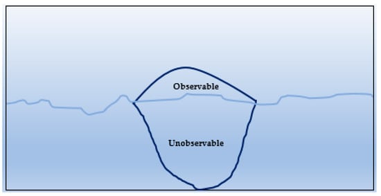 In economics, “Marshall plus Keynes” neoclassical synthesis is still teachable for the non-specialist future citizen since the “visible hands” stated by Adam Smith has been elusive, and the story has therefore never been all that easy to see—as a perusal of his original text demonstrations (). However, human decision-making processes are significantly from their “power” explained by integrating psychological aspects and individual social-economic ideas (). From this perspective, quantum physics can potentially affect a merger with computational economic models through the concept of the power behind a decision. More expressly, Figure 1 displays the diverse iceberg for economic movements. Along with fluctuations in the trend, traditionally computational economics restrictedly captures only the observable zone (the top of the iceberg). However, numerous amounts of information exist underneath the water, which potentially motivate human perspectives to conclude a final decision, are intentionally neglected by the assumption called “normality”. With this strongly theoretical supposition, traditional econometrics has been trustworthy for more than a hundred years.
