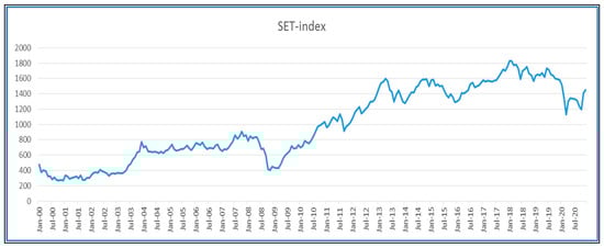 The dynamic movement of the Thailand stock exchange between 2000 and 2020. Source: Stock Exchange of Thailand (SET)