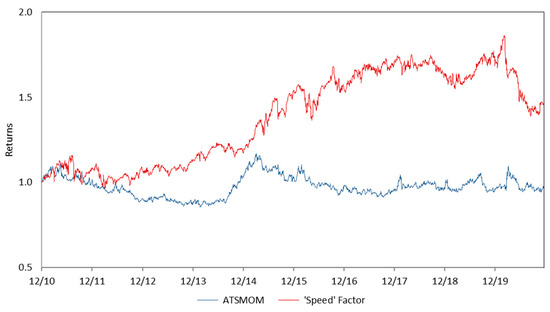 To evaluate the significance this effect has on the momentum strategy’s performance, we construct an alternative portfolio where the positions with “long-term” momentum are bought (long position), and the ones with “short-term” momentum are sold (short position). Elaut and Erdős (2019) refer to this position as the “speed” factor. As illustrated in Figure 3, the momentum portfolio with the “speed” factor presents a better investment opportunity as it outperforms the ATSMOM portfolio during the sample period.