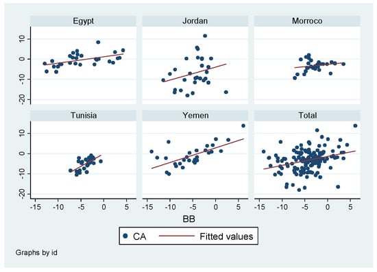 3.2.1. Correlation between Budget Balances and Current Account Balances in the MENA Region