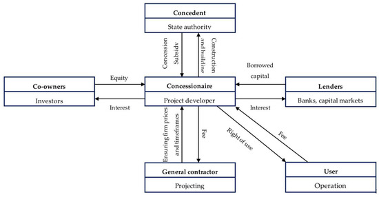 Common model of a PPP structure in Russia. Source: compiled by the authors based on information from (Merkulina and Hadzhi-Ogly 2020).