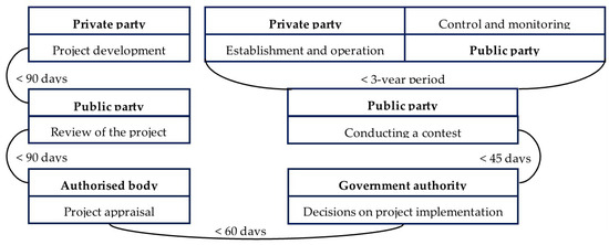 Scheme of timing of a PPP project in Russia under Federal Law N224, al 12. Source: compiled by the authors based on information from (Merkulina and Hadzhi-Ogly 2020).