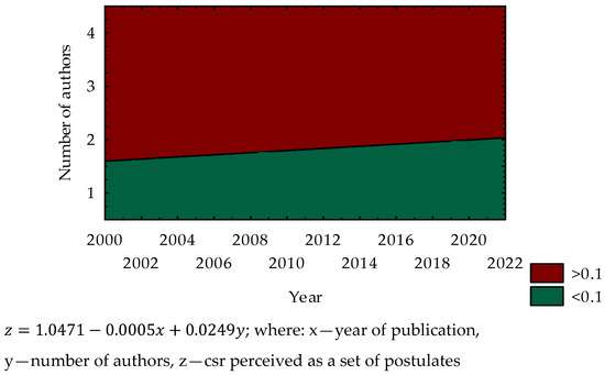 Based on the research results, this tendency is dominant in merely 5.4% of articles, but this is ambiguous and independent on the publication year. What is particularly significant is the growth, which is in line with the number of authors overtime. As opposed to the foregoing, a reverse trend is observed in the context of a normative approach to CSR (Figure 5).