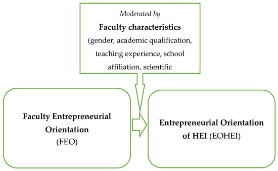 Scientific Productivity in terms of the number of publications in peer-reviewed journals moderates the relationship between Faculty Entrepreneurial Orientation (FEO) and the Entrepreneurial Orientation of Higher Education Institutions in Kuwait (EOHEI).