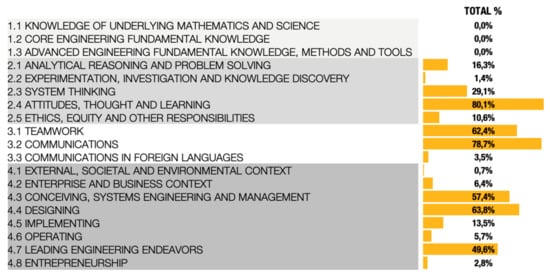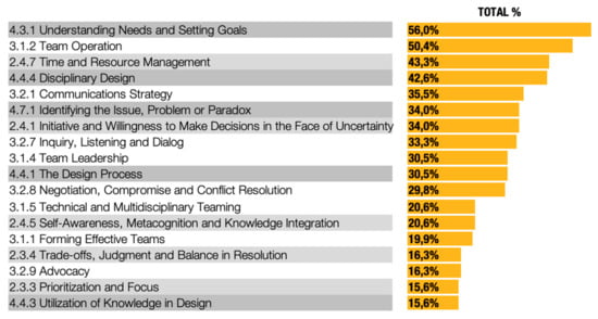 Overall results at the third level of the CDIO syllabus 2.0 (only items above 15% are shown).