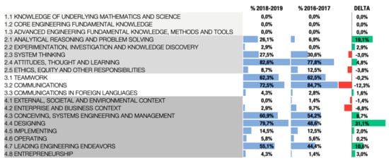 The approach makes possible to observe how the introduction of the module has impacted the students’ perception of learning with regards to outside-the-class activities (Figure 10). At first glance, it is noticeable how the focus of the lessons learned at the second level of the CDIO Syllabus 2.0 has shifted from communication-related aspects to problem-solving, analytical reasoning and design.