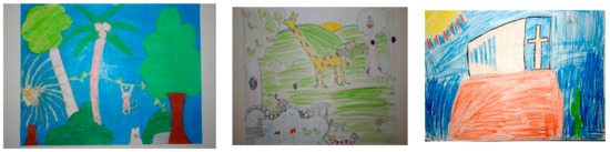 Drawings have proven useful for studying children’s environmental values, environmental relationships and environmental concepts [18,19]. Some advantages of this research method are that it avoids language problems and that children often feel comfortable drawing. Drawings are of special value for students that have difficulties expressing themselves verbally [54], and they can be helpful for those students who are shy or lack language skills [55]. When interpreting drawings, it must be taken into account that there are differences in respect to age and gender [56]. However, according to research on the development of children’s drawing skills [56,57], students participating in the present study would be able to realistically describe the conservation value of the landscape.