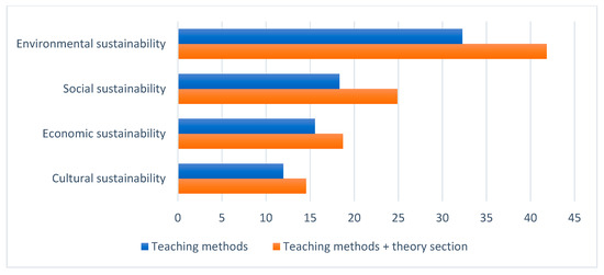 Percentage of the general teaching and learning skills in geography that promote sustainable education, including outdoor education, for achieving sustainable development goals (n = 636 expressions including the theory part).