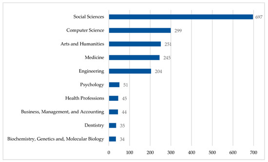 In the 2000–2019 period, there are different subject areas where articles related to DE and artistic-visual learning in the context of HE were found. According to the Scopus database classification, the 1291 articles analyzed are classified into 27 thematic areas, where an article can be classified in more than one category, depending on the publisher’s interest.