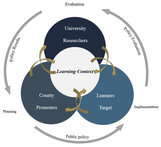 The evaluation of educational projects and policies has, in previous years, proved to be one of the concerns of central and local governments. Considering the growing complexity that follows the creation of public policies in the most varied fields and its process of implementation and evaluation, it is worth mentioning the integration of specialized professionals, which are aware of the (complex) social reality and its social and political problems [46], in order to use theory as a reference and tool to evaluate and measure the validity and the reach of conclusions built in the evaluation process. This dynamic is not only indicative of a greater visibility and importance given the expert knowledge which contributes to increase the participation and intervention, but also of a greater recognition of science, of its role and value. This way university institutions see that their role has a higher importance to research, analyze, evaluate, produce, and disseminate new knowledge.