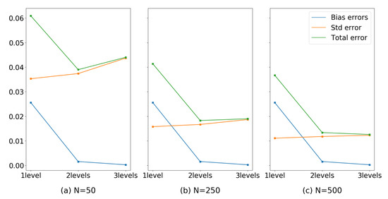 Table 7 compares the standard deviation for three different models with different levels of complexity. As we see in the table, the more complex the model (number of levels for each state), the larger the variance error (as reported by the sample standard deviation) for the model. Figure 9 depicts the bias, standard deviation, and total errors (sum of bias and variance errors) for the different models with different sample sizes. As the figure suggests, for the cohorts with sample sizes of 50 and 250, the model with two levels has the lowest total error among the other models, and for the cohort with the sample size of 500, the model with three levels has the best performance. For the models discussed in this paper, we considered a consistent number of levels for all transient states. However, based on the context, this approach can be customized to include different numbers of levels for different states (i.e., Freshman, Sophomore, Junior, Senior).