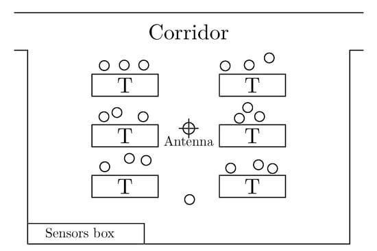 The sensors have a very limited built-in memory: antennas are used to collect and store the contact data. As a consequence, only the areas covered by these antennas are monitored: any contact occurring outside will not be recorded. Antennas have a theoretical range of detection of 30 m, but it is limited by the presence of obstacles such as walls.