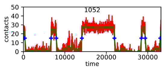 Sensors are calibrated so that a contact lasting 20 s will be detected with probability ∼100%. Contacts lasting less than 20 s are detected with a probability which decreases with their duration. This calibration sets the temporal resolution of the system: contacts are recorded every 20 s. The minimum contact duration is therefore set at 20 s. The internal detection system of the sensors limits the number of simultaneous contacts to 25 per interval of 20 s.