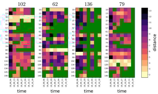 Figure 7, that means we have one group of six students (Group A: 102, 30, 37, 57, 74, 62), the TA (54), three isolated students (10, 86, 136), a group of four students (Group B: 80, 13, 55, 66) another isolated student (99) and the previously spotted group of four students (Group C: 61, 128, 79, 116).