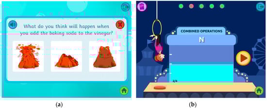 Smile and Learn is an intelligent platform in the field of educational technologies. As of March 2020, this intelligent platform contains more than 5000 digital activities. These activities can be classified as games, quizzes, videos, and tales, all of which have been designed and supervised by a multidisciplinary team of educators. Most of these activities can be played at different levels of difficulty. The different activities are organized through categories into eight worlds according to the type of knowledge they represent. Worlds are related to various academic subjects: Science, Logic, Literacy, Emotions, and Arts. These areas provide teachers additional material and activities for use in their lessons [45]. Also, a recommendation system based on artificial intelligence is featured in the platform to recommend activities according to the children’s performance [46].