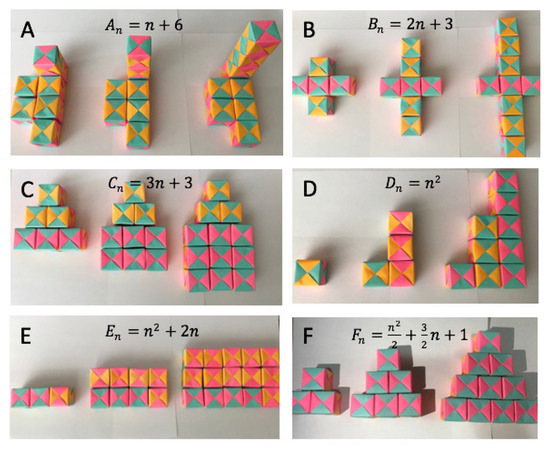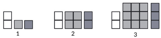 The series of tasks proposed in this investigation is well-known and has been utilized in early (even pre-algebra) algebra; that is, a sector of the field that is addressed during the transition from arithmetic to Algebra per se. This has often been related to the generalization process [41,42,43,44].