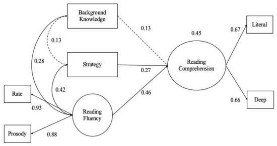 - Klauda, S.L.; Guthrie, J.T. Relationships of three components of reading fluency to reading comprehension. J. Educ. Psychol. 2008, 100, 310–321. [Google Scholar] [CrossRef]