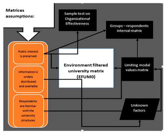 We chose a circular regression for this study: (1) we stated the problem, then, (2) we tested the scores, until (3) second order decision problems arose statistically. Next, (4) we tried to refine the analysis, (5) rework the hypotheses, and (6) adjust our decision frameworks. The reasoning was reversed, as indicated in Section 2.1, simply because the researchers repeatedly returned to the same hypotheses, as the underlying constraints were not always representable as dependent on the environment or the framework of the respondents’ decisions. The contexts and properties were all options, intrinsic to the appropriate environment that we declared “emblematic” for our research, but also to the relational representations of what is legitimately conceivable from an integrated measurement of a non-normative choice of university groups.