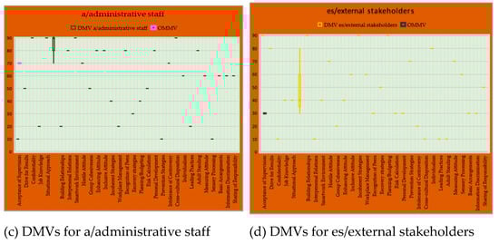 where DM is the decision-making ∀ (for all) relational matrices of s (students), d (teachers/professors), a (administrative staff), and es (external stakeholders) within the time t ≽ following (the emergency event).