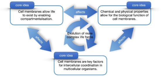 Our findings extrapolate Howitt et al. (2008) [] and Rundgren et al.’s [] proposal to understand compartmentalisation as a core idea of cell membrane biology: it is by the physical separation of distinct environments that these could carry out different biochemical reactions. This laid the grounds for evolution of different life forms from the earliest quite simple prokaryotic organisms to later more complex eukaryotic cells with different membrane enclosed compartments, and subsequently the evolution of complex, multicellular organisms. Our results also support Tibell et al.’s (2010) [] emphasis on understanding cell membrane function (and much of biological function in general) in light of chemical and physical properties and consequently the stress they place on the three-dimensional character of cell membranes. This is also reflected by the historical research into membrane structure in the 20th century, where scientists knew of the existence of cell membranes, however, lacking the necessary equipment to study them, deduced their structure from what they knew about chemistry.