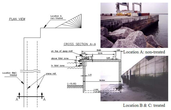 - Schueremans, L.; van Gemert, D.; Giessle, S. Deterioration in quay-wall structures and effect of hydrophobic treatment. In Proceedings of the International Forum on Engineering Decision Making Second IFED Forum, Lake Louise, AL, Canada, 26–29 April 2006. [Google Scholar]