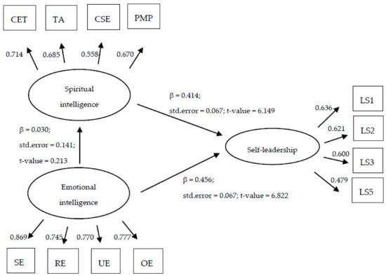 SEM model of emotional and spiritual intelligence and self-leadership.