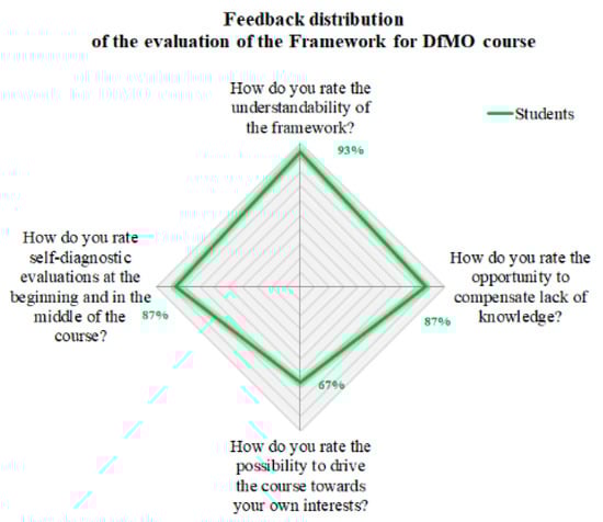 The results of the evaluation are presented in Figure 5. A semi-quantitative method based on a Likert scale with a range of 0–5 was chosen to visualize the reflections of the students.