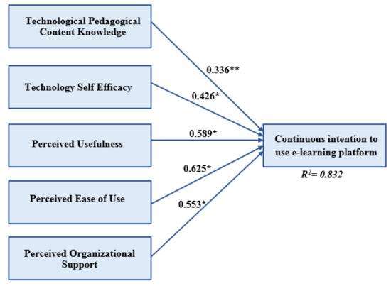 TPACK will positively affect teachers’ CU in the e-learning environment.
