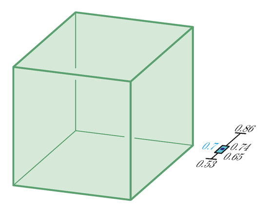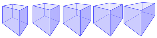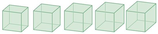 We provided a relatively wide range for to be adjusted, so that in the axonometric figures, where means an extremely “thin” cuboid, while yields a very “thick”, elongated solid. To avoid confusion with various foreshortenings, these values have been transformed to the unified parameter s from the interval in each test figure. From GeoGebra, we received the value s of the chosen length of the edge in direction x, where