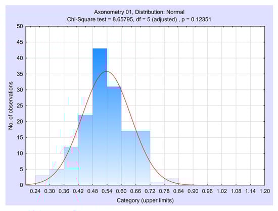 The axonometric task Axo03 with mean . Non-outliers minimum: , non-outliers maximum: , median: , IQR (see Table 2).