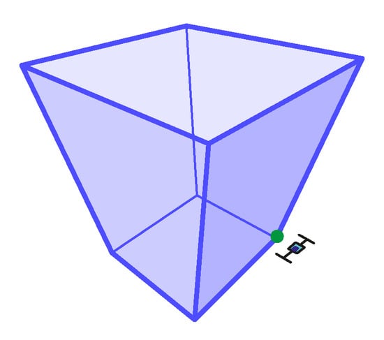 To do this, we conducted an experiment with an interactive computer model in which the width and height of the cuboid drawing are fixed, but the foreshortening in the third direction (the “depth”) can be changed by the user with simple means [10]. This is an innovative investigation because although students are taught to see and draw the representation of the cube, no previous investigation has been carried out on the visual perception of these drawings. We were interested in how coherent people, who were actually first-year students with advanced spatial perception skills (c.f. [11]), but without specific knowledge of descriptive geometry principles, judge this situation, and to what extent the set foreshortenings coincide or differ for different students. In the case of axonometric drawing, we have also compared the selected depth of the cube to the foreshortening conventionally used in engineering drawings and figures in educational materials. In the case of perspective drawings, we have examined how these positions are coherent to the exact solution of this problem in the geometric sense (what we mean by the exact solution here will be discussed in detail in Section 2).