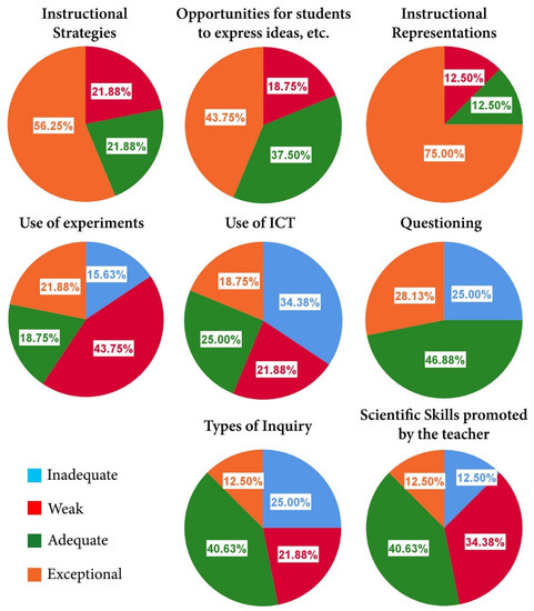 Another strong point in the teachers’ teaching is the use of scientifically accurate language. This is an encouraging result as language is considered to be a decisive factor for the development of the students’ scientific concepts. Inaccurate or misused scientific language and misleading and confusing expressions could lead to misconceptions and become a serious impediment to learning science. Scientifically inaccurate language of teaching can cause students’ common misconceptions to remain, with little chance of being eradicated, since, in this situation, they are continually reinforced by the teachers themselves [42].