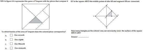 Authors [] use the term “chain of questions” to refer to a set of questions belonging to INVALSI tests of different school grades related to the same areas, mathematical dimensions, and contents.