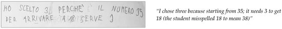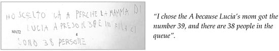 We also highlight that reading and interpreting a mathematical text does not only mean decoding the question but also implies the ability to find out relationships between the different parts of which it is composed. In this respect, Zan [] started from the assumption that there is a close link between “context” and “demand” followed by the focus of the problematic situation: the more the two components are connected, the greater will be the understanding. This connection is not always immediate; generally, the student faces a “heteroposto” problem, i.e., formulated by an individual different from him. For this reason, the solver is not the one who spontaneously asks himself the “question” following the reading of the “context”, but it is imposed on him [].