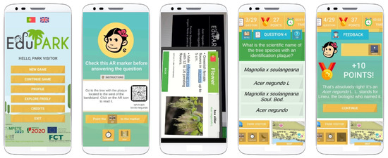 Selected screens of the EduPARK app and game.