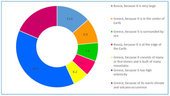 On the contrary, according to Wang et al. [22], Singaporean students attribute both earthquake and volcano occurrence to magma. We suppose it is so because of Singapore’s proximity to the “ring of fire” and volcano impact on humans is probably more intense. Ross and Shuell [11] believe that students in Utah, USA, attribute earthquake occurrence to volcano formation because it is geographically closer to volcano areas. While Aydin [62] noted that the Marmara earthquake in Turkey (1999) influenced students’ earthquake concepts. Thus, we assume that the density and distribution of geodynamic phenomena in time and place where people live can determine the kind and the way of alternative ideas’ that occur.