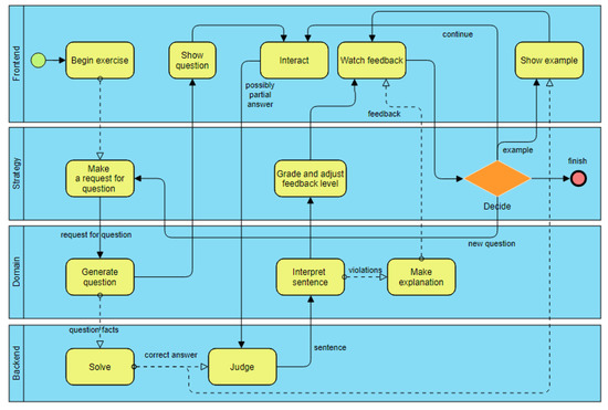 Furthermore, our system offers systematic coverage of all the ways to break subject-domain rules that are used to measure the students’ performance and determine the suitable problems for them to solve using a pedagogical strategy based on the Q-learning approach [16,17], though the system design allows the easy integration of other approaches such as Bayesian Knowledge Tracing. This provides our system with the ability to classify the learning problems automatically, which is a step in the direction of generating learning problems using an existing program code without a human in the loop. Our long-term aim is to create a system capable of building problem banks in subject domains automatically, selecting the problems to give students according to the kinds of errors they made previously, and maintaining the dialog with the student (including asking follow-up questions) until mastering the subject-domain concepts and laws.