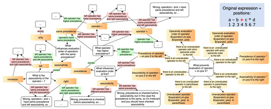 This domain is aimed at teaching expression evaluation order using the primary task of choosing the next operator to be evaluated (i.e., ordering question for the operators in the given expression that requires using each operator once and can have several correct orders). Understanding expression evaluation is the basic skill for computer science education; its mastery serves as a basis for developing more complex skills such as analyzing and writing program code. The domain supports the C++ and Python programming languages; the support for other languages can be added using tags for subject-domain laws.