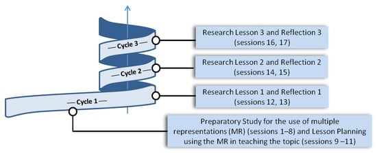 Figure 2 schematizes the three cycles LS program implemented in this investigation. The program spanned approximately 51 h in total, each session taking three hours, except the three lesson reflections that took 90 min each. In concrete: