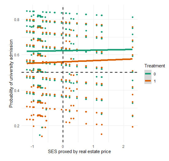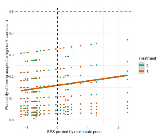 Hypothesis 3 (H3). (Extensive margin 3) Reform increased the probability of disadvantaged students being admitted to high-rank curricula;