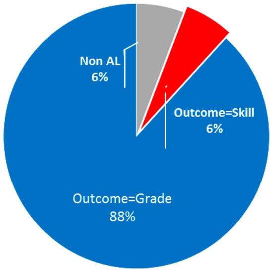 Percentage of students who have not chosen AL (Non AL), students whose learning is directed to obtain professional knowledge and skill (Outcome=Skill), and students whose primary target is the final grade (Outcome=Grade).