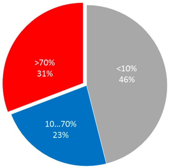 Those who used less than 10% (a few minutes weekly) could not be considered as real AL participants though they are presented in the AL group in Figure 2. Therefore, they are not included in further diagrams. Starting from 50%, the mean grade actually does not depend on time. However, the AL workload above 70% draws particular attention as it may prove to be increased and excessive compared with traditional learning, thus resulting in a reduced number of AL forms they participated in called “a degree of engagement” in the introduction.