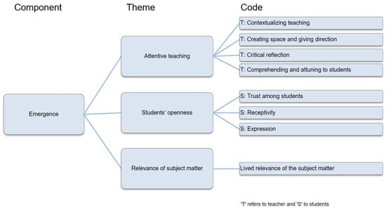 The three components of teachers’ experiences of presence in their daily educational practice—emergence, manifestation and significance—structure the description of the results. We elaborate on each component by describing the themes, the similarities and variations that we found within them, and the interplay between the themes and codes within each component.