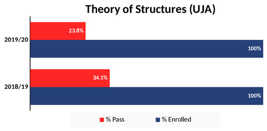 The numbers of passes showed that the virtual teaching and evaluation system behaved in a similar way to the previous year, which was a face-to-face one. This was due to greater teacher–student interaction and flexibility in dealing with unforeseen technical difficulties. Even so, the small differences could be attributed to the lack of access to technology at home by a few students, i.e., affordability problems. In this sense, this recent experience revealed two other challenges: to reduce the digital divide and the lack of inclusion in higher education. This may include facilitating a digital equipment loan service and access to wireless technology to low-income families [25,26].
