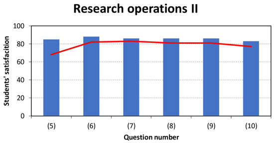 Average values of UDEP students’ satisfaction degree regarding the teaching–learning and assessment processes in research operations II.