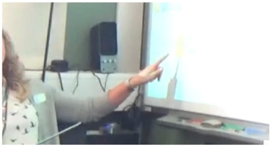 The analysis was divided into the same sections as the LDS model: the setting and the primary and secondary transformation units. The theoretical perspective allows for descriptions, interpretations and analyses of detailed aspects of modes [26,31] and therefore the analysis was underpinned by multimodal transcription charts, separating the dense and multimodal video material into different columns for different modes such as speech, gestures, sounds, and screen activity. The transcriptions were transformed into more readable excerpts and, if possible, illustrated by anonymous photos. The citations in the excerpts were translated as close to the Swedish meaning as possible, and might therefore stand out as “Swenglish”.